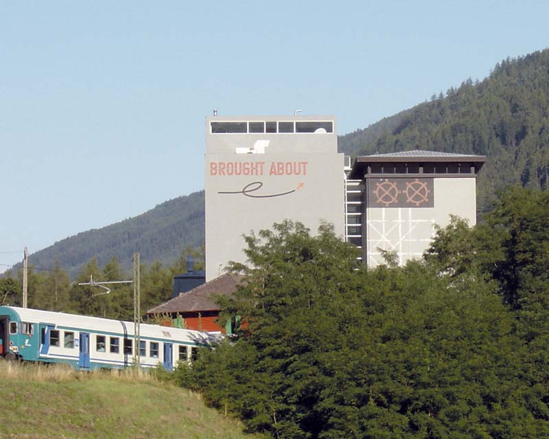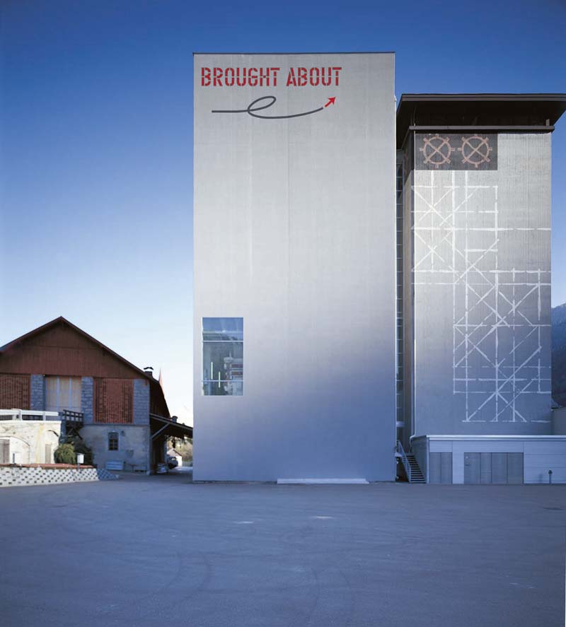 Rieper AG, Kunst am Bau, Vintl, 2002 - 2004 Die Geometrie der neuen Produktionsst�tte wird weitestgehend durch technische Vorgaben bestimmt. Im Rahmen des Planungsprozesses werden mit Architekt Werner Franz Varianten der notwendigen bzw. m�glichen �ffnungen in der Fassade erarbeitet und entsprechend verfeinert. Dem folgt ein pr�zis gef�hrter Diskurs �ber die Farbkonzeptionen , die schlie�lich zu einem Grau f�hrt, das sich vom Bestand nur geringf�gig abhebt. �ber all diesen Ans�tzen steht die Klarheit und Notwenigkeit einer k�nstlerischen Intervention. 1960 / 1968 / 1987 / 2003 - K�nstlerische Projekte an den Geb�uden der Rieper AG. Das "Kunst und Bau"-Engagement der Firma Rieper fand 1968 ihren Anfang, als ein Lagersilo erbaut wurde. Albert Rieper beauftragte den S�dtiroler K�nstler Heiner Gschwendt, der mit wei�en, senkrecht, waagrecht und diagonal verlaufenden Linien die riesigen Zementwandfl�chen �berzogen hat. Mitte der 80er Jahre wurde die k�nstlerische Gestaltung bereits bei der Planung einer Verladehalle ber�cksichtigt. Albert Melauner entwickelte ein Farbkonzept f�r die H�lle des Geb�udes. Die Umsetzung erfolgte 1987. Als mit der Planung einer neuen Produktionsst�tte und eines Lagers im Jahr 2000 begonnen wurde, entschied man sich, einen kleinen geladenen Wettbewerb zur Entwicklung eines k�nstlerischen Projektes zu veranstalten. Im Fr�hjahr 2003, als insgesamt acht Arbeiten zur Diskussion standen, entschied sich die Rieper AG eine Arbeit des amerikanischen K�nstlers Lawrence Weiner umzusetzen. Heute ist der Schriftzug "Brought About" in roten Buchstaben klar am neu errichteten Geb�ude zu lesen. Bauherr: Rieper AG Kooperation: Architekt Werner Franz, Andreas Hapkemeyer (Museion Bozen) Projektleitung: Michael Rieper Mitarbeiter: Christine Schmauszer Fotos: Foto Rapid, Michael Rieper Planungs- und Bauzeit: 2002 - 2004