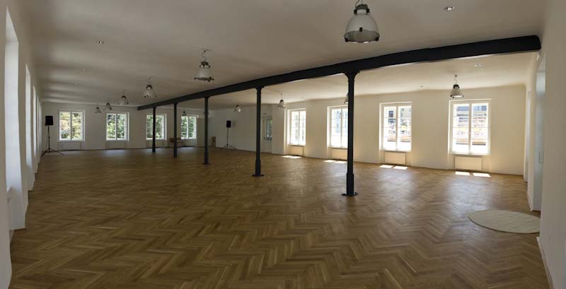 Ausgangspunkt Herbst 2008. Zwei ehemalige Lagerräume der Rathleitnerschen Schafwollwarenfabrik, ein Raum im 2. Obergeschoss und ein Dachboden darüberliegend. Schön, zweimal 276 m², Industrieromantik; jedoch in dieser Form nicht nutzbar. Keine Heizung, kein Strom und Wasser, die Fenster fehlen oder sind demoliert, das Dach ist nicht gedämmt, kaum Tageslicht im Dachraum.