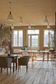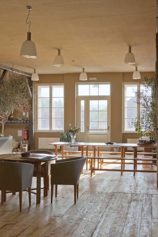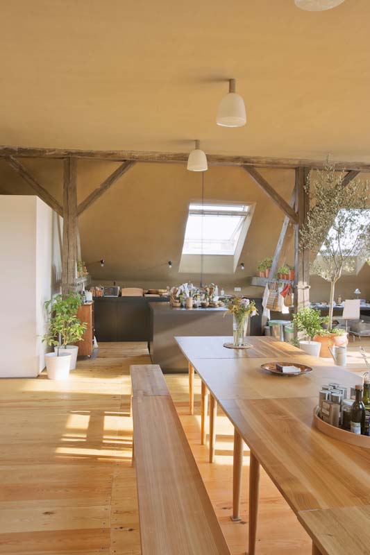 Die Idee, das Konzept. Ferdinand, der Bauherr hatte den Traum in den Räumlichkeiten ein Zentrum für Bewegung, Tanz, Yoga u. a. zu installieren. Man findet sich, es wird gemeinsam wird ein Konzept entwickelt, das die ursprünglichen Qualitäten der Räume erhält, diese zum Thema macht, und zugleich dem heutigen Standard von Baukultur entspricht. Es bedarf eines großen Raumes mit Schwingboden zum Tanzen, dazu ein zweiter Raum für kleinere Veranstaltungen sowie die gesamte Infrastruktur, die solche Raumnutzungen benötigen. Es werden technische Ausstattungsmerkmale wie Wasser, Strom, Sanitär und eine Heizung installiert. Der Dachboden erhält Tageslicht, wird ökologisch gedämmt und erhält nicht zuletzt durch den Lehmputz ein ganzjähriges gutes Raumklima. Behutsame Renovierung des alten Bretterbodens im Dachraum und Verlegung eines neuen massiven Parkettbodens im 2. Obergeschoss. Die Kastenfenster werden gänzlich neu angefertigt.