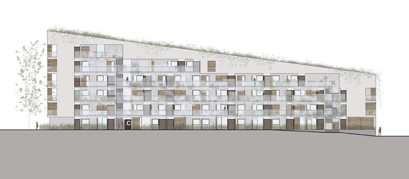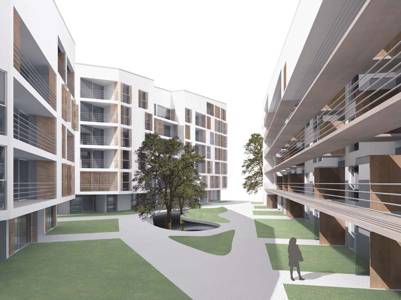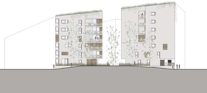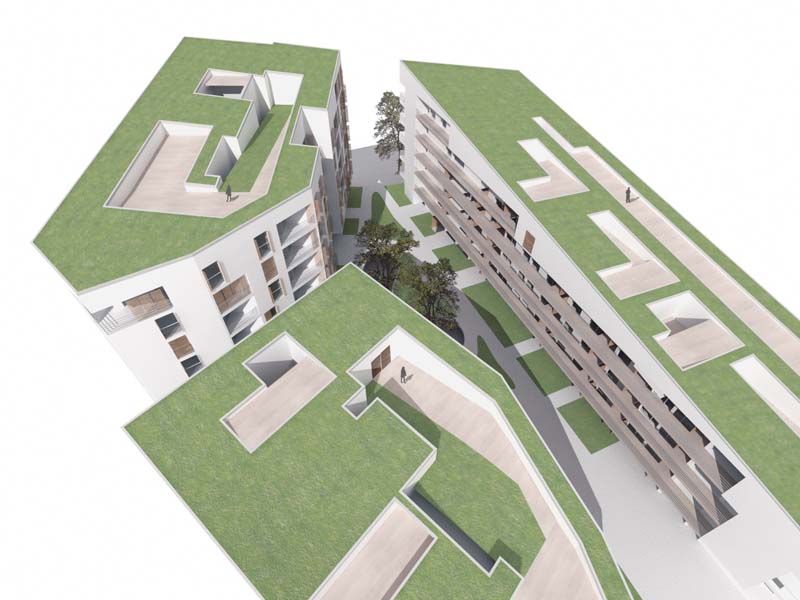 Wettbewerb: 2004, anonymer, einstufiger Realisierungswettbewerb Auslober: Arche im KVW Projektleitung: Michael Rieper Mitarbeiter: Christine Schmauszer, Patrick Klammer, J�rg Sp�ttl Konsulenten: Engelhard & Merl, DI Ernst Heiduk, Gerald Jessernig, Ing. Nikolaus Gasser Visualisierung: Jakob Winkler Umfang: Wohnbau, gegliedert in 3 Bl�cke f�r insgesamt 92 Wohneinheiten