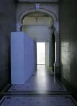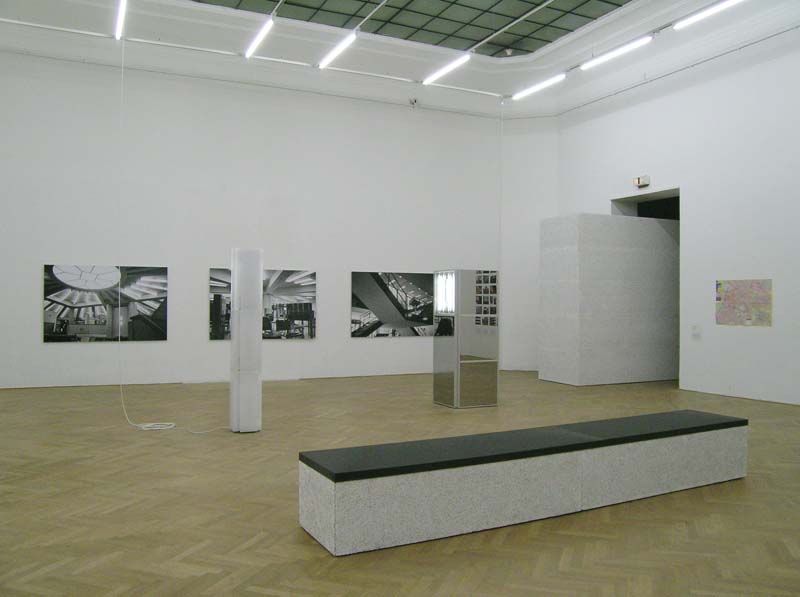 Der streng symmetrische Grundriss des Bestandes des Künstlerhauses wurde aufgegriffen, durch eine leichte Drehung gebrochen und so ein neuer Kontext eingeschrieben. Alle vorgenommenen Einbauten machten diese Drehung mit, auch das vor dem Haus platzierte Leuchtelement. Die Ausstellungsgestaltung wurde zurückhaltend aber neu raumbildend eingesetzt, sodass die Räume eine Verknüpfungsebene erhielten.