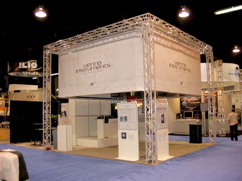 MVD Austria betreut die Vienna Symphonic Library seit dem ersten Release im Jahr 2002. Für die Namm 2006 in Los Angeles wurde der VSL-Cube in abstrahierter und reduzierter Form als Symbol für den Messestand bearbeitet. Das von Georg Skerbisch entwickelte Corporate Design wird räumlich übersetzt und bildet in Form eines schwebenden beidseitig bedruckten transluzenten Vorhanges den Blickfang für die vor Ort stattfindenden Präsentationen. Der ideelle Würfel wird auch von oben durch eine bedruckten Ebene abgeschlossen. Sämtliche ergänzenden Möbel wurden aus weißem Compact Forming Teilen gefertigt. Eine Besonderheit bilden die Infopaneele, die von der Firma Lighttech mit innen liegenden Leuchtmitteln ausgestattet wurden. Als Tragsystem fungiert ein ATC Traversensystem.