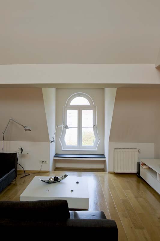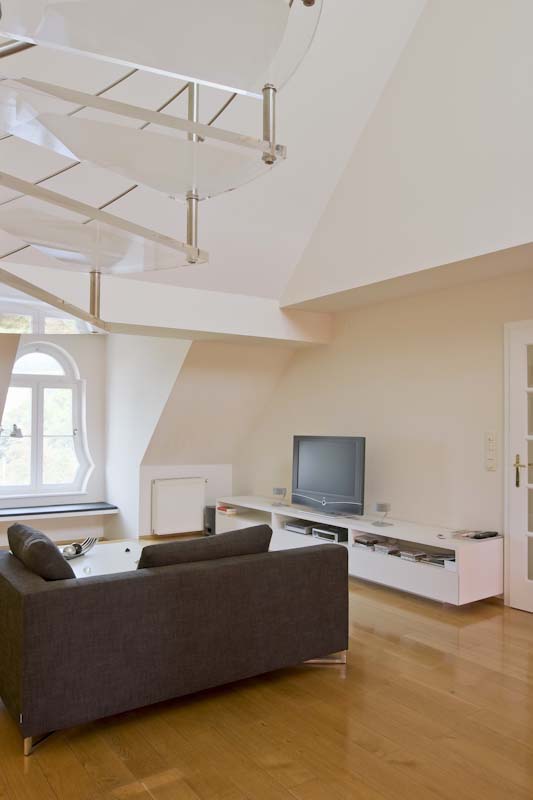 Zeitgemäßer Umbau des Wohnraumes plus Galerie eines Dachausbaus aus den 1980er-Jahren.