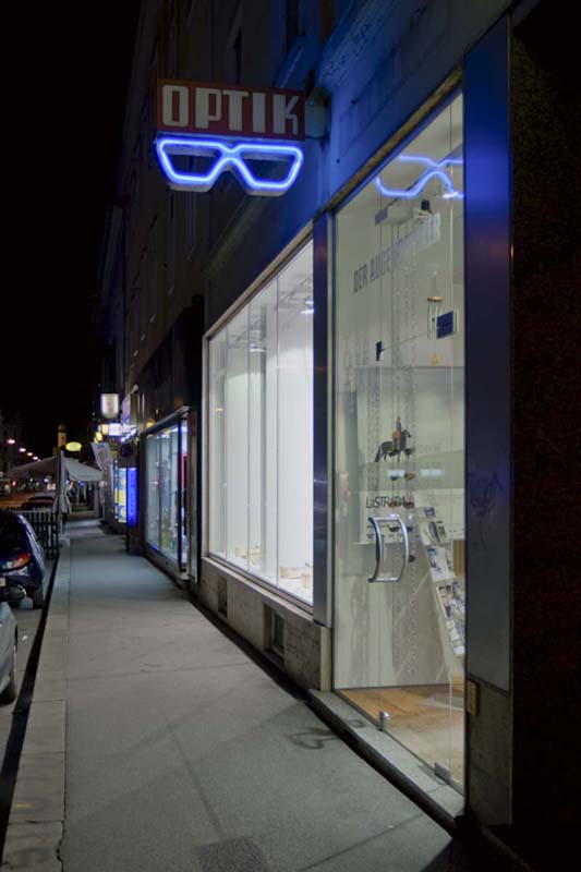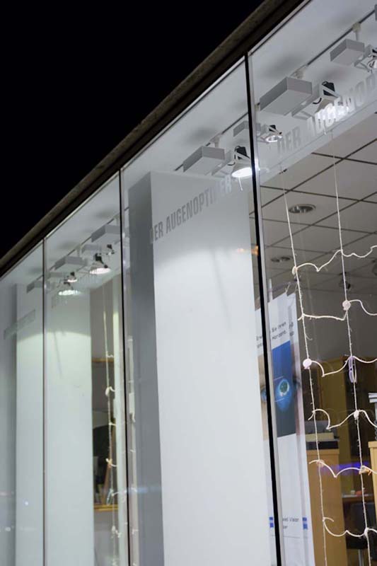 Fassadengestaltung Der Umbau der Fassade und der ersten 50 cm der Geschäftstiefe geben Einblick in das Sortiment und die Arbeit des Augenoptikers.