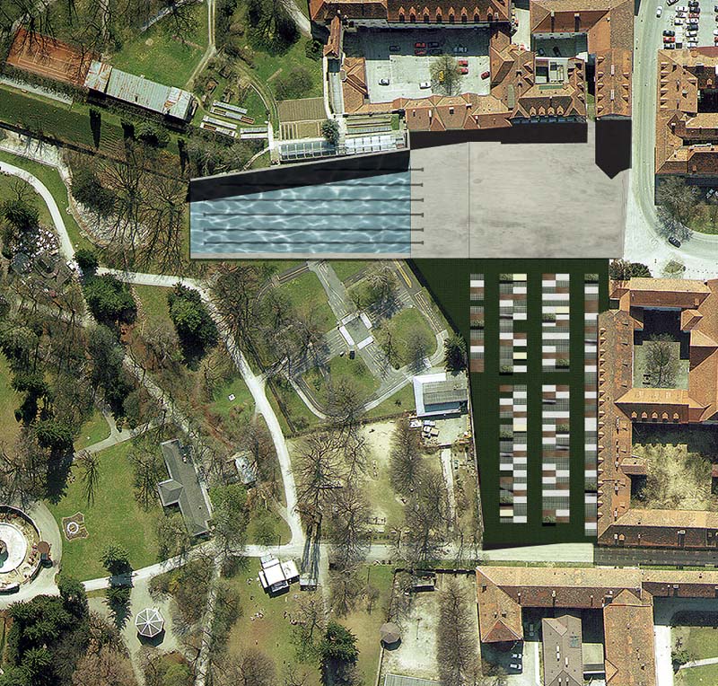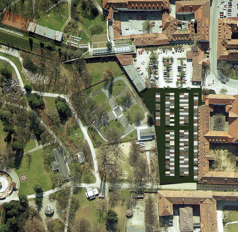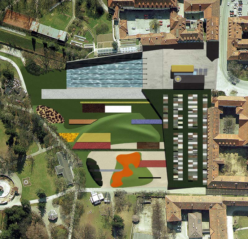 2000 Green, Graz, 1997 Nutzungs- und Freiraumkonzept Pfauengarten, 8010 Graz Die Transformation der Kubatur durch die Massenzivilisation ist immanenter Bestandteil s�mtlicher Medien, jedoch zeichnet sich dieser Wandel im �ffentlichen Raum einer Stadt wie Graz so gut wie gar nicht ab. Die Gleichzeitigkeit der multikulturellen Bed�rfnisse kann sich nicht in der Namensgebung von Fu�ballstadien (Arnold Schwarzenegger Stadion) und einer aussichtslosen Bewerbung zu einem Megaevent - alias Olympische Winterspiele - oder einer Gartenausstellung im Jahr 2000 widerspiegeln. Ebenso verh�lt es sich mit dem Wunsch nach einem Zentrum f�r die Kunst der Gegenwart , im Prozess der Planung und Realisierung wechseln sich dabei schildb�rgerliche Vorgaben und st�ndiger Zweifel an der Sinnhaftigkeit ab. Der Zeitpunkt an dem sich eine Stadt der Konstruierbarkeit von Kultur w�dmet ist am Ende unseres Jahrhunderts denkbar sp�t gew�hlt, vor allem dann, wenn diesbez�gliche Ans�tze in der Vergangenheit mehrmals scheiterten. Fin de si�cle und 2000 Green. Es gilt in sensibler, jedoch zielsicherer Form einer eher apokalyptischen Gesamtstimmung mittels kleiner Eingriffe und Aktivit�ten entgegen zu wirken. 1. Park_Platz und Campingsplatz - der "Sch�nste Parkplatz der Welt" 2. Barriere versus Durchbruch - der Chlorteich als Freibad im Zentrum, Markt_Platz, Luna_Park, Sport 3. Modern Artification - Ein Garten als Zeitzeichen, Liege- und Sitzfl�chen, Kontextgarten, k�nstliche Nat�rlichkeit versus nat�rliche K�nstlichkeit. Ein Garten ist einerseits Fortsetzung der Architektur, ist Teil einer Stadt, andererseits ist er Natur, ein St�ck Paradies. Die Bedingungen f�r die Anlage eines Gartens sind dar�berhinaus geformt und vorgegeben vom Gleichgewicht (oder von der Spannung) zwischen nat�rlichem Wachstum und k�nstlichen Eingriffen. 4. Ort der Kommunikation - eine tempor�re H�lle als Ort der Konfrontation, als neuralgischer Punkt. Bauherr: Studie Projektleitung: Siegfried Frank, Michael Rieper Mitarbeiter: Georg Skerbisch Visualisierung: Jakob Winkler Planungszeit: 1997